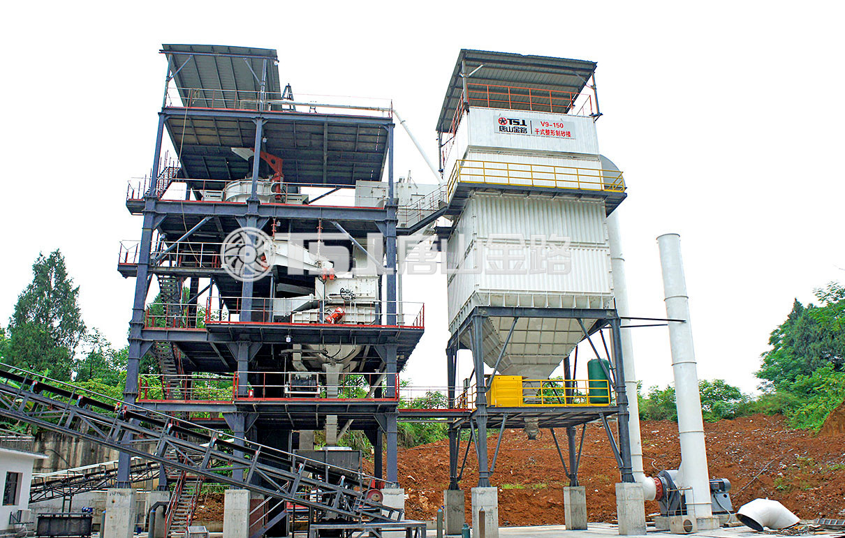唐山金路V9干式制砂樓主要用于高品質(zhì)機(jī)制砂的生產(chǎn)中。這款塔樓式結(jié)構(gòu)的制砂設(shè)備高度集約,把制砂、粒形優(yōu)化、石粉控制、級配調(diào)整、含水率控制、環(huán)保處理結(jié)合于一體,減小占地面積的同時(shí)發(fā)揮多種功用。此外,這款設(shè)備采用全封閉的干法制砂工藝,減少粉塵外溢,防止廢水污染。